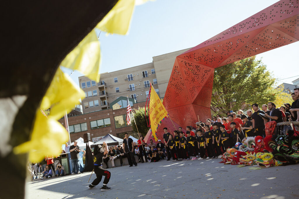 The event sprawled out nearly four blocks centered around Hing Hay Park, where families, dogs, tweens, and elders sat eating and watching live performances under the newer metal paifang gate.