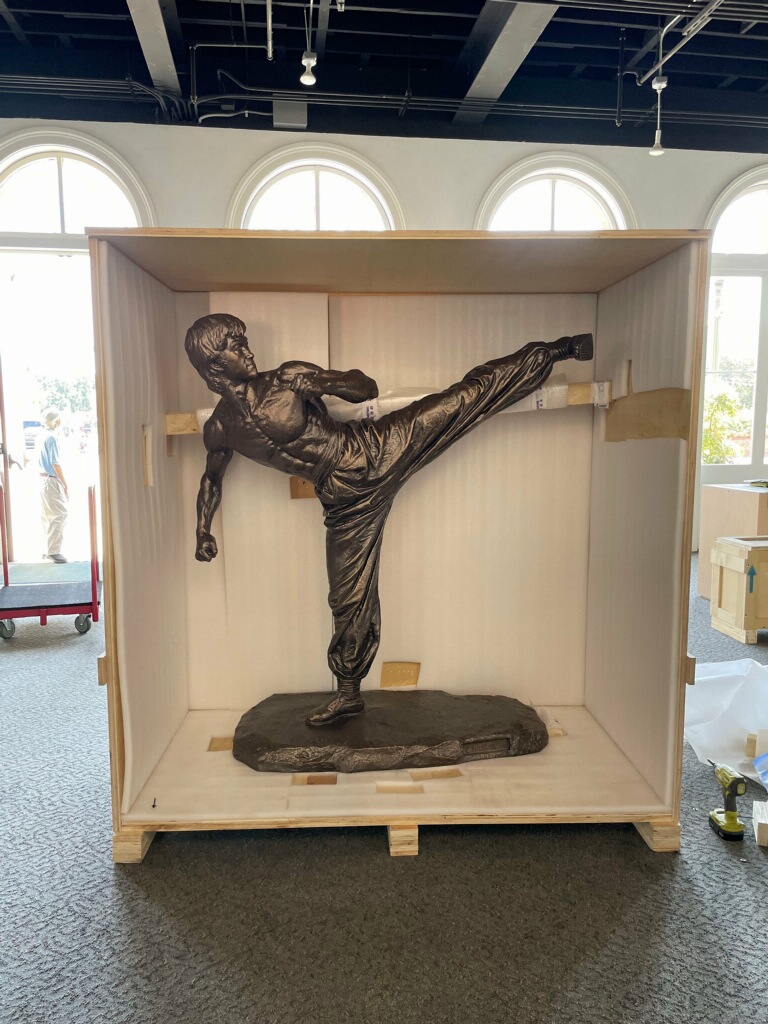 But they still didn’t have anywhere to put it—until, by chance, they heard from Jerry Lee, the architect behind the CID’s famous gate. Pai said that Shannon Lee, Bruce Lee’s daughter, had told Jerry Lee of architecture firm MG2 that Pai and Dang’s group had a statue.