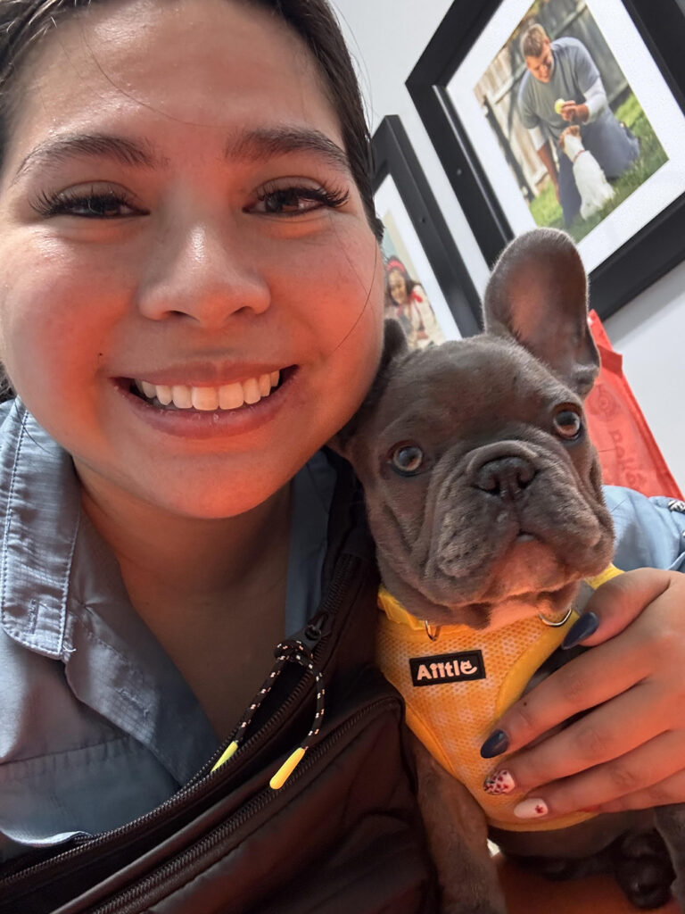Winston the French Bulldog helps Estadilla with both her business and her wellness. (Photo courtesy of Shaina Estadilla and Winnie Shine Designs)