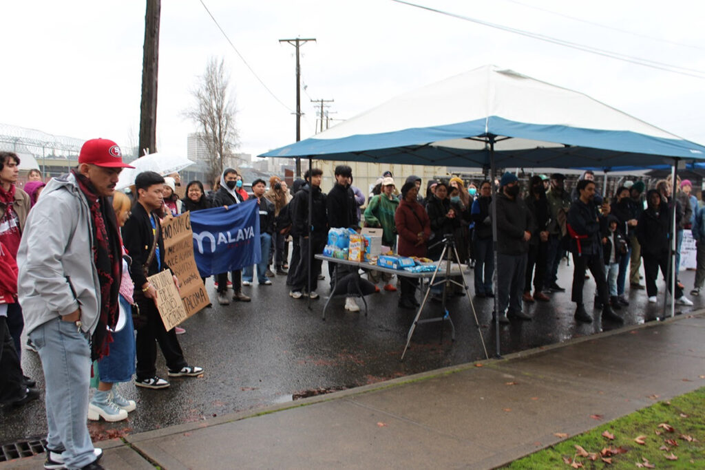 Community members rally outside the Northwest Detention Center in Tacoma, on Nov. 16, 2025, demanding a stop to the deportation of “Kuya G.” (Photo by Grace Corrales)
