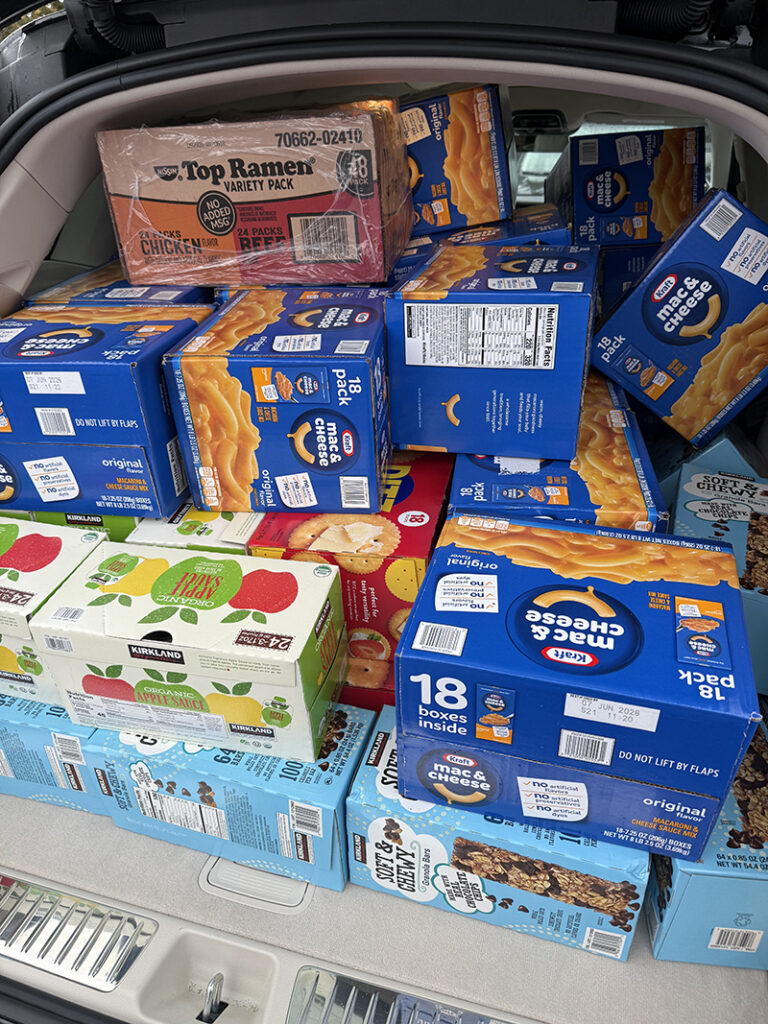 “We cleaned out a few stores and had cars full of stuff, and brought it all into the office and spent Monday afternoon and evening packaging everything,” he said. “We did bread, peanut butter, pasta, pasta sauce—a lot of non-perishable stuff.”