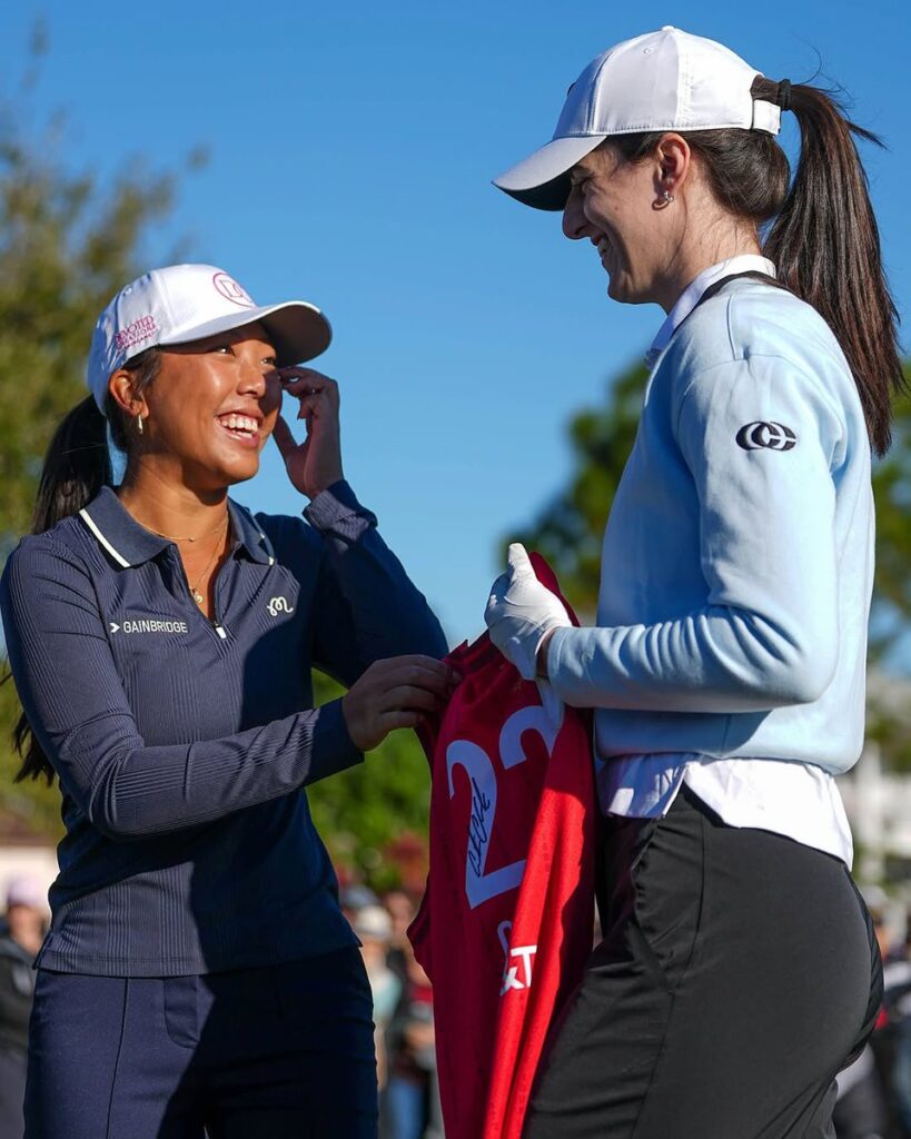 Nguyen participated in the event’s pro-am on Nov. 12, a promotional round in which pros play alongside amateur participants such as celebrities, sponsors, or local guests. She played alongside WNBA guard Caitlin Clark. Clark had surprised Nguyen earlier with the news via a personal invite on Zoom.