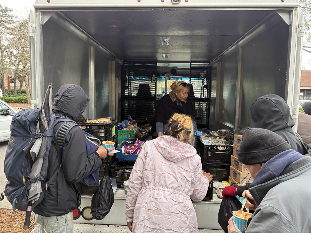 UTOPIA Washington team members distributing food resources to houseless communities in the Kent area (Courtesy: UTOPIA Washington)