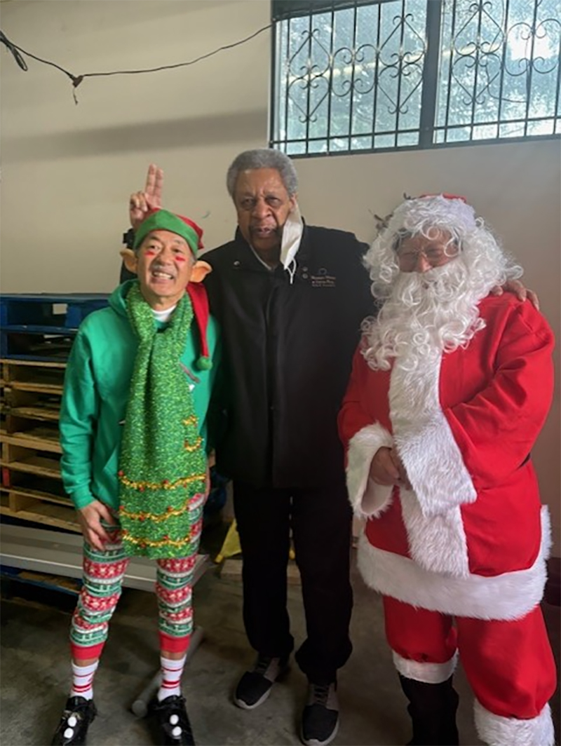 Despite wind chills in the upper 30s, Santa Claus and an elf named George greeted about 500 people on Dec. 19 at the 17th annual Christmas roasted chicken and zongzi giveaway at the ACRS Chinatown-International District food bank.