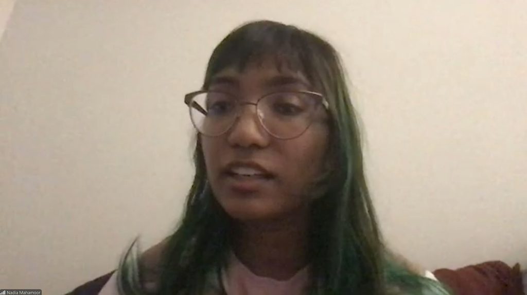Nadia Mahamoor is a Sri Lankan Malay artist and panelist who joined the discussion from Richmond, British Columbia. She completed her bachelor’s degree in industrial design at Emily Carr University of Art and Design in Vancouver. Her creative practice explores identity, textiles, and what she calls “futurisms”—imagining futures where diaspora and colonized people see themselves represented.