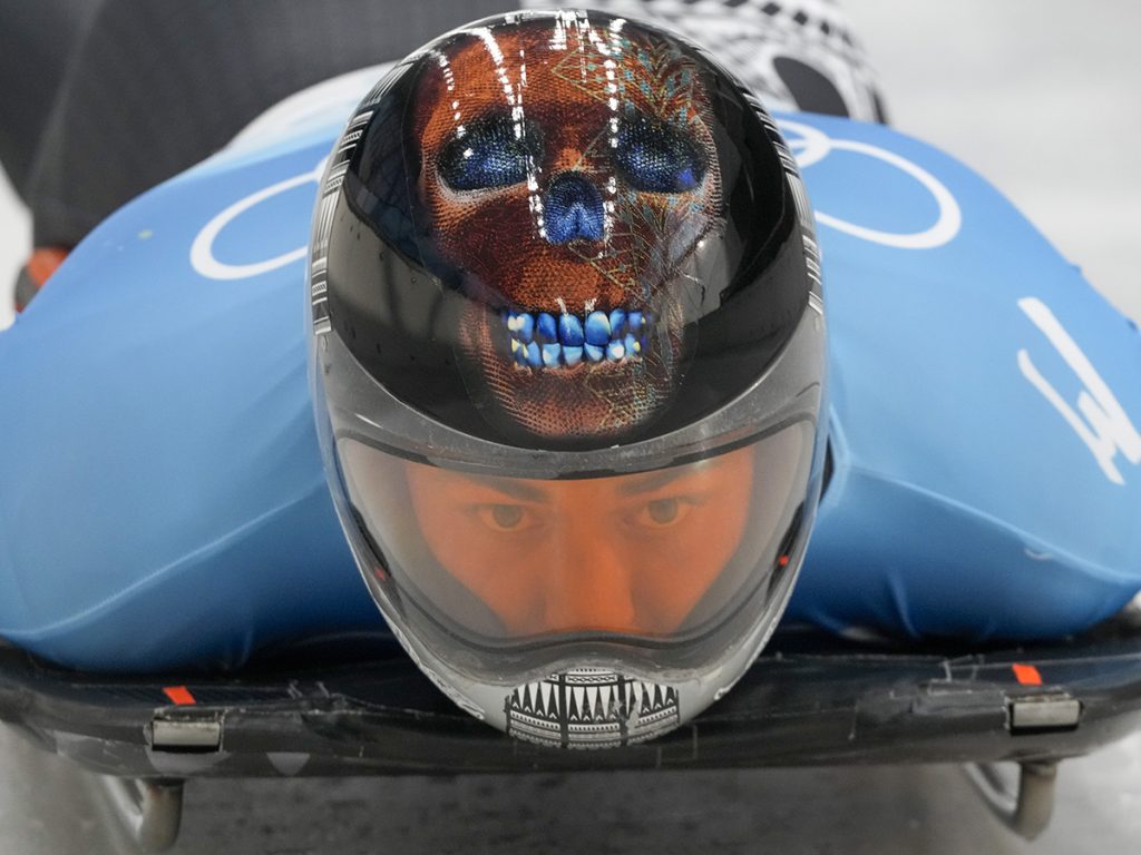 Nathan Crumpton, of American Samoa, slides during men’s skeleton run 1 at the 2022 Winter Olympics, Thursday, Feb. 10, 2022, in the Yanqing district of Beijing. (AP Photo/Pavel Golovkin)