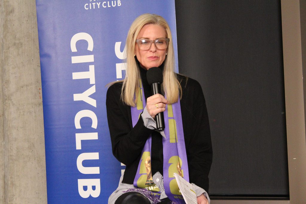 SeattleFWC26 Chief Strategy Officer April Putney dismissed concerns about federal intervention during the Feb. 4 forum organized by Seattle City Club at The Collective Seattle. “The World Cup is happening here. Period. Hard stop. Will not be removed,” she said. Putney noted that organizers hold weekly meetings with a White House task force and called progress across all 11 U.S. host cities “productive and helpful.”
