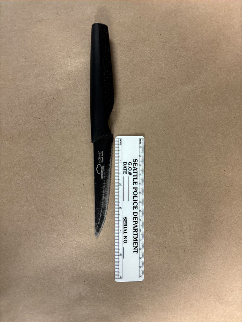 Officers booked the suspect to the King County Jail. Police recovered the knife and machete as evidence.