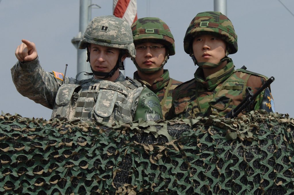 Korean Demilitarized Zone. Republic of Korean and U.S. Soldiers at Observation Post Ouellette, South Korea, in 2008. U.S. Army Photo by Edward N. Johnson. Creative Commons license CC BY-NC-ND 2.0.