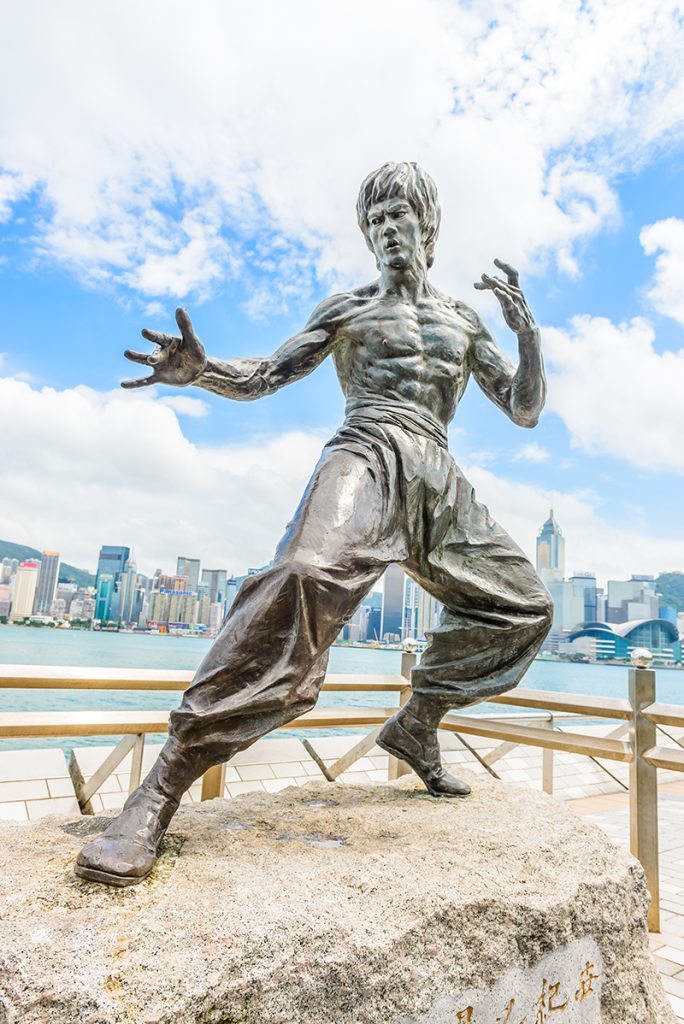 Bruce Lee statue located on the Avenue of Stars attraction near the waterfront at Tsim Sha Tsui in Hong Kong, China.