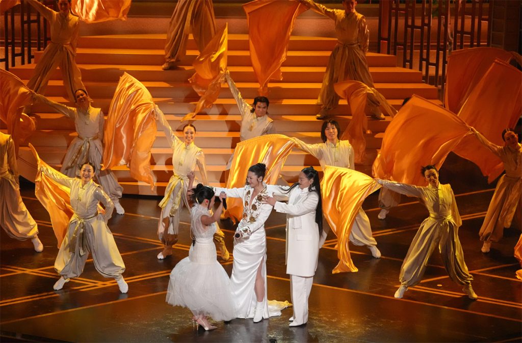 Rei Ami, from left, EJAE, and Audrey Nuna perform “Golden” from “K-Pop Demon Hunters” during the Oscars on Sunday, March 15, 2026, at the Dolby Theatre in Los Angeles. (AP Photo/Chris Pizzello)