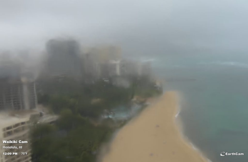 Screenshot from Earthcam webcam from the Hilton Hawaiian Village Waikiki Beach Resort on March 20, 2026.