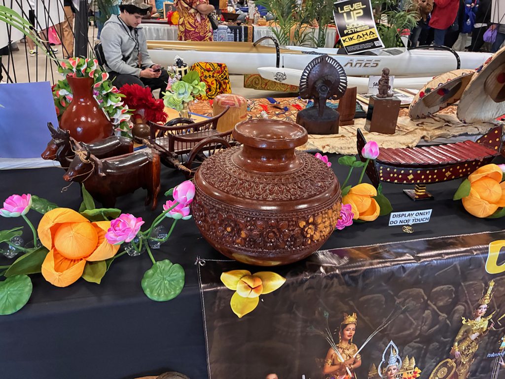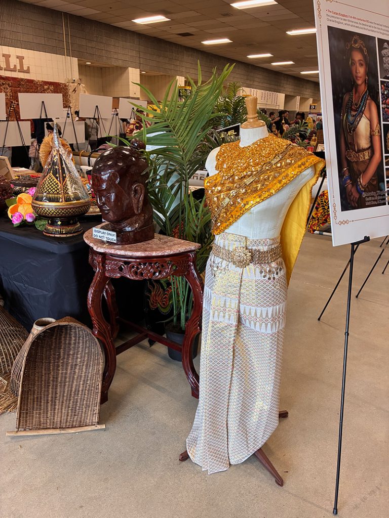 “It’s a nice way to show our culture,” said Kai Jon Dela Paz, as he described his black-and-white krama. Dela Paz, who is trying to build a career in photography and videography, volunteered at a prop photo booth which featured musical instruments and other items from Cambodian culture.