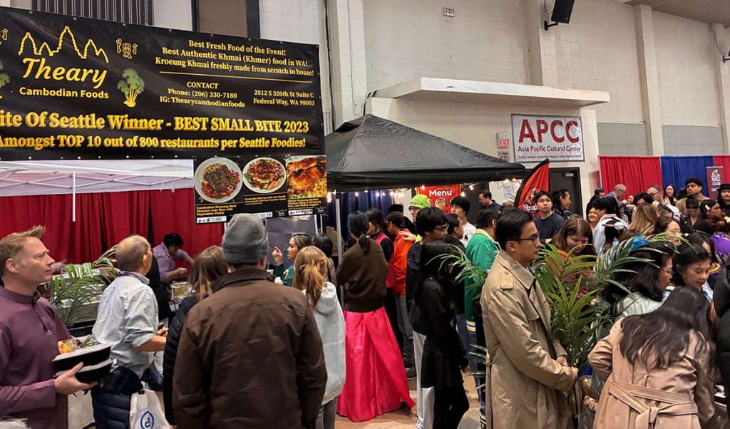Crowds packed the Tacoma Dome Exhibition Hall to celebrate the Lunar New Year with the Asia Pacific Cultural Center (APCC) on Saturday, Feb. 28. Now in its 28th year, APCC’s event presented Cambodia as its featured country and onstage, special guests, politicians, and other VIPs were ceremoniously draped with traditional kramas. The krama is a lightweight, woven fabric with a checkered pattern.
