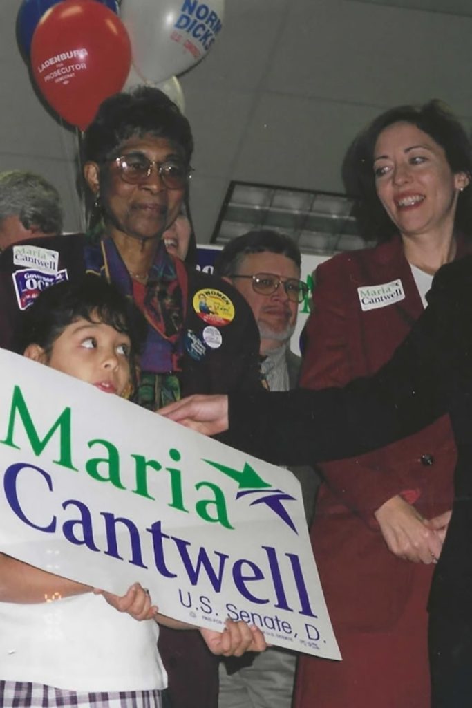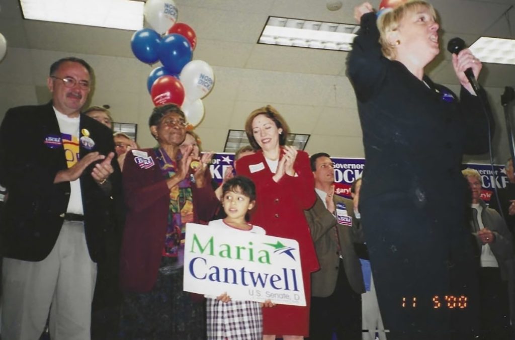 When I started first grade at Sheridan Elementary, it was in 2000, 2001. I need to look at the year, but this is when Maria Cantwell was running for her Senate seat. And so, there’s a picture of me with Cantwell holding her sign with then-Representative Conway and Representative Rosa Franklin. And I think [Sen.] Patty Murray was there, too.