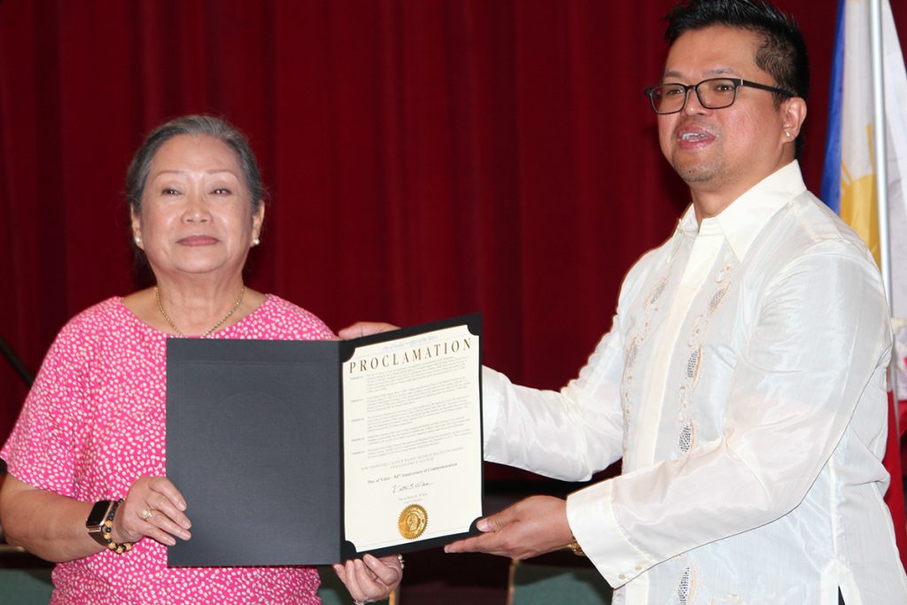 After her address, retired U.S. Army Brig. Gen. Oscar B. Hilman, Region 8 director of FVREP, presented Santos with a certificate of appreciation. “I’m honored to present to Representative Tomiko Santos the Congressional Gold Medal,” Hilman said. “She spoke about Bataan and Corregidor, and I just loved it dearly because it was delivered with such passion.”