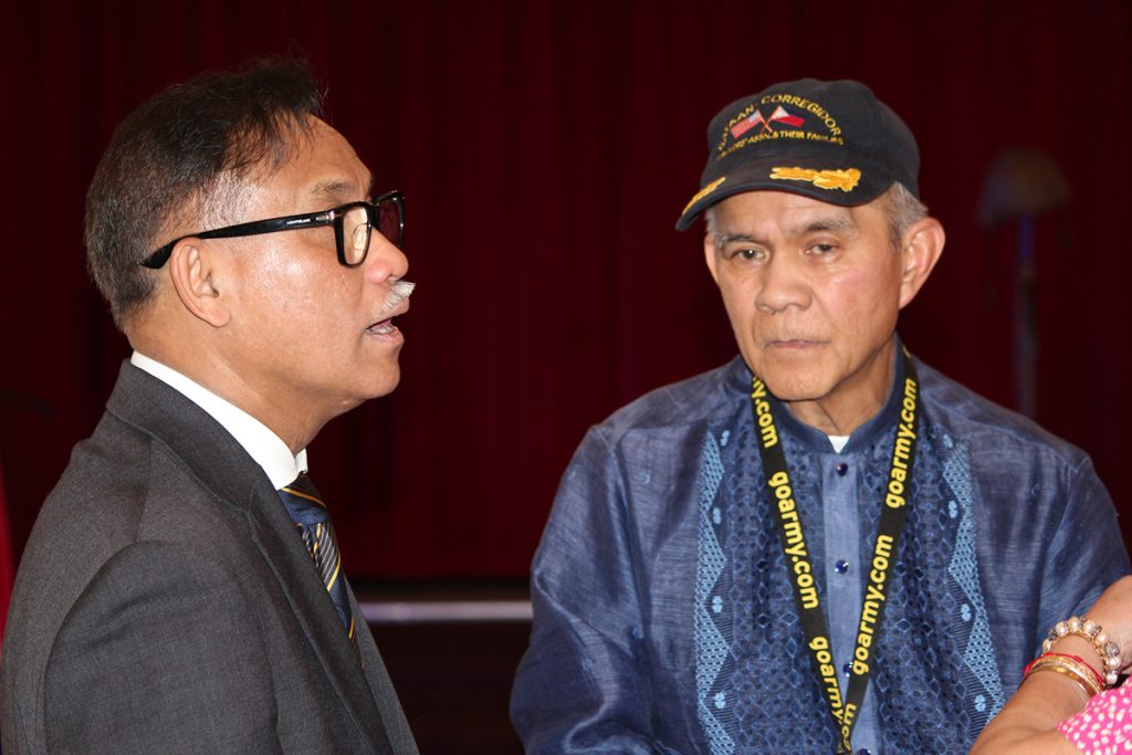 Philippine Consul General Henry S. Bensurto Jr. (left) and Commander Larry Cambronero, Bataan Corregidor Survivors’ Association and Their Families. (Photo by James Tabafunda)