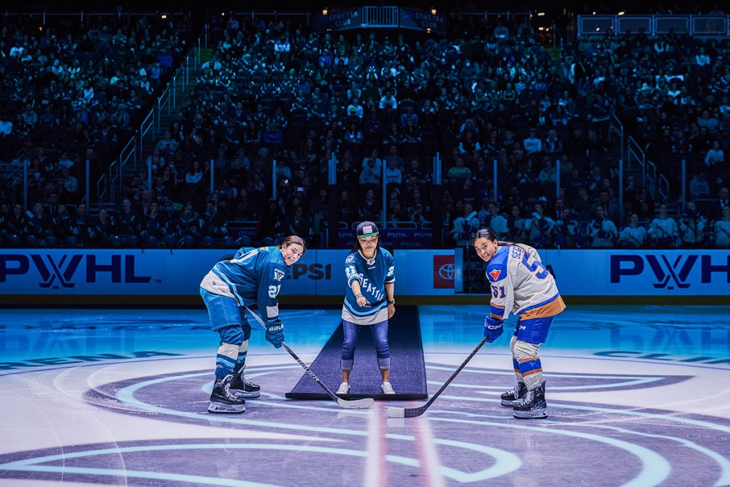 The Seattle Torrent welcomed the Vancouver Goldeneyes to Climate Pledge Arena for its first AANHPI Heritage Celebration Game on Saturday, April 18. Despite a 6-5 Torrent loss in overtime, the game drew over 12,000 fans who were able to experience musical performances, learn more about local AAPI organizations, and celebrate the diversity of Seattle’s AAPI communities.