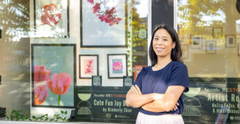 This October, a burst of color will brighten a Lake City storefront thanks to Bellevue-based artist Kimberly Chan. Selected as part of the Seattle Restored program, Chan is debuting a vibrant floral window installation that transforms vacant space into public art.